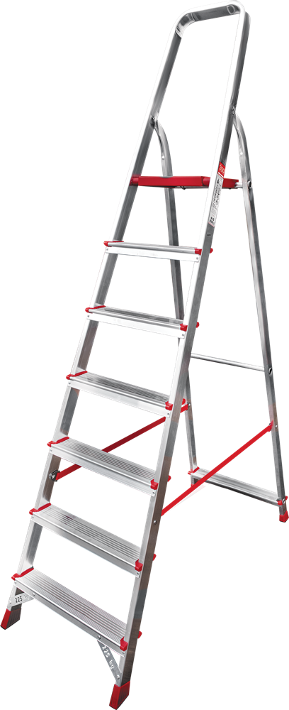- Легкая конструкция из алюминия обеспечивает прочность и легкость стремянки