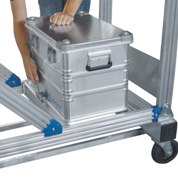 Алюминиевые фиксаторы для ящиков Zarges 43800000. Следует соблюдать максимальную наружную ширину 800 мм.