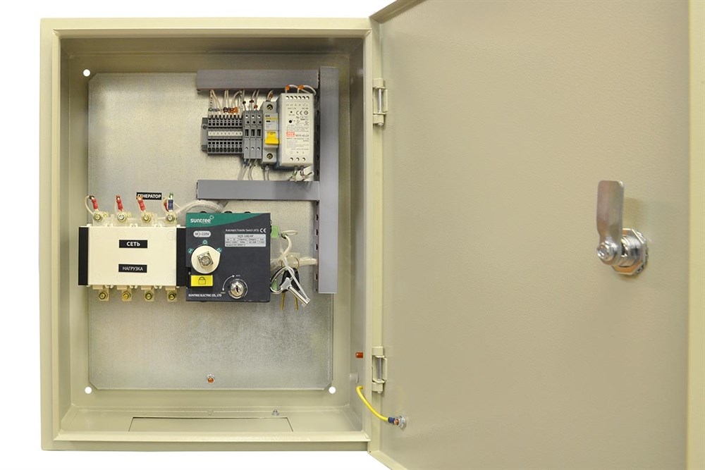 Вводы взаимно блокируют друг друга – один из них замкнут, другой разомкнут. В нормальном положении основной ввод замкнут и от постоянного источника (как правило это линии электропередачи) происходит электроснабжение потребителей. В случае пропадания электропитания (или выхода качества электроэнергии за рамки установленных значений) система автоматики производит запуск генераторной установки.
