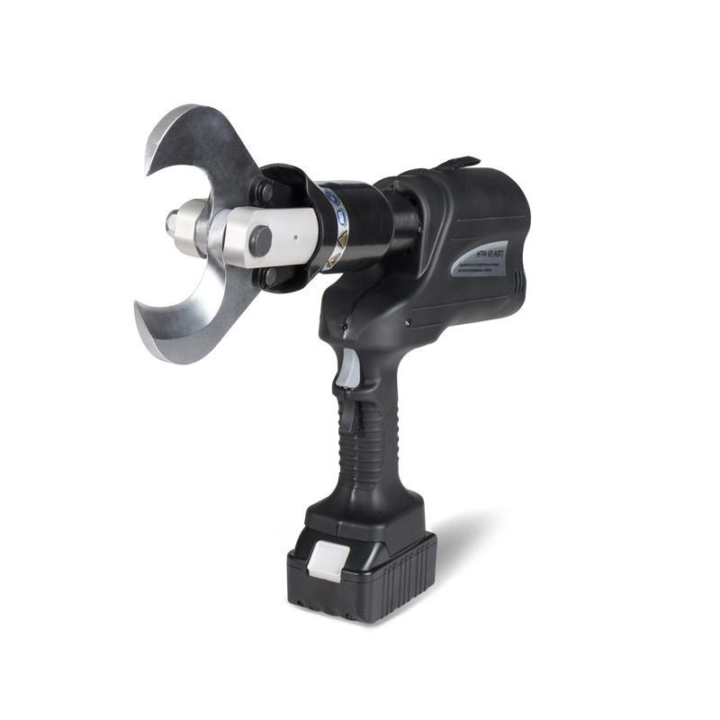 Ножницы состоят из поворотной рабочей головы с установленными в ней лезвиями и корпуса, внутри которого расположен гидроцилиндр, плунжерный насос, приводимый в действие электродвигателем. Электродвигатель работает от аккумулятора, который расположен и зафиксирован в нижней части корпуса. Электродвигатель приводит в действие насос после нажатия и удержания кнопки «ПУСК», расположенной на корпусе, рабочая жидкость подается в гидроцилиндр. Под давлением рабочей жидкости поршень ножниц перемещается, приводя в движение лезвия до тех пор, пока кнопка «ПУСК» не будет отпущена. После завершения реза происходит автоматический сброс давления и отвод поршня в исходное положение. Для возврата штока на промежуточном этапе реза в исходное положение на корпусе расположена кнопка «СБРОС». После нажатия кнопки открывается клапан сброса, поршень под действием возвратной пружины выдавливает рабочую жидкость обратно в резервуар.