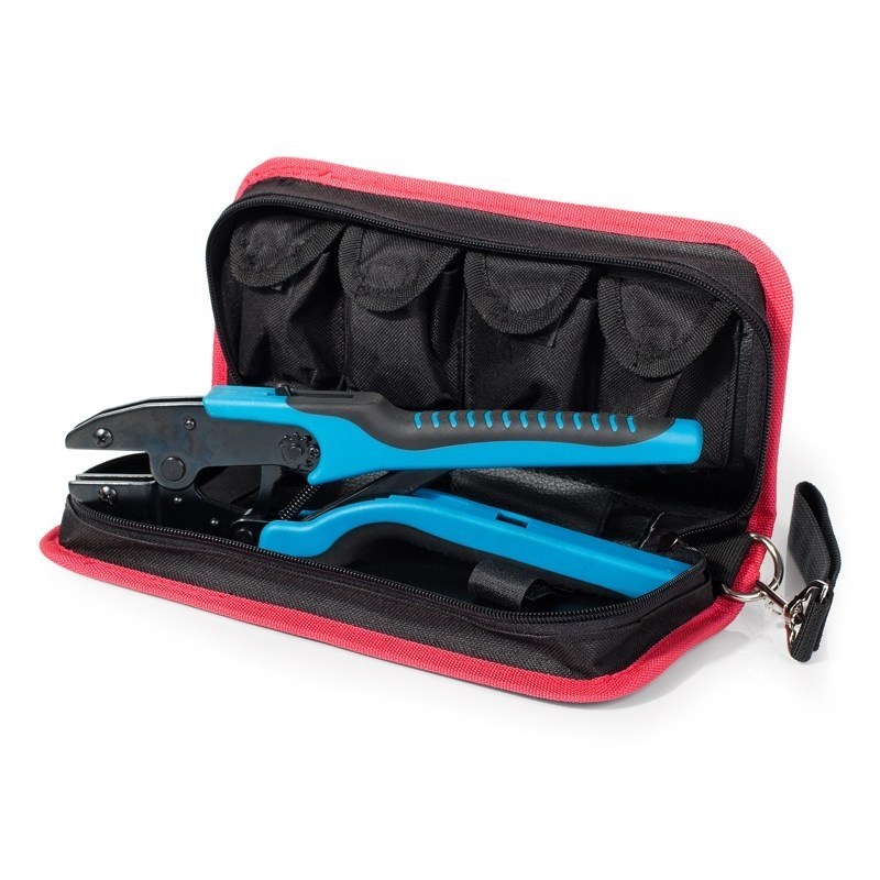 Набор КВТ СТВ+0 пресс-клещи в сумке рассчитан на 5 матриц. Матрицы для опрессовки приобретаются отдельно. Одна матрица – в инструменте и четыре матрицы хранятся в кармашках. Совместимость: все матрицы серии МПК (КВТ). Усиленная конструкция пресс-клещей с надежной механикой. Храповой механизм, обеспечивающий блокировку обратного хода до завершения полного цикла опрессовки. Устройство разблокировки храпового механизма. Регулятор прижимного усилия матриц. Удобные эргономичные рукоятки. Прочная и удобная сумка с двумя карманами на лицевой стороне, кистевым ремнем и креплением на пояс. Материал сумки: водонепроницаемый полиэстер 1680D Оксфорд.