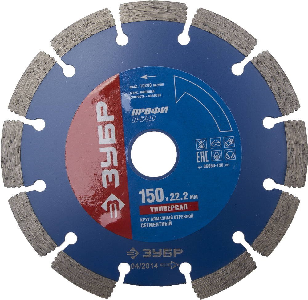 Отрезеной диск Зубр, алмазный, сегментный, 22,2х150мм 36650-150_z01 применяется в угловой шлифовальной машине для резки (сухой и с применением охлаждающей жидкости): бетона, гранита, кирпича, камня, мрамора, других строительных материалов. Время непрерывной работы не должно превышать 60–90 с, после чего необходимо охлаждать диск на холостом ходу не менее 20 с. Направление вращения должно строго соответствовать направлению стрелки. Запрещается использовать диск для резки и шлифовки металлов. В случае засаливания диска можно восстановить его режущую способность, выполнив серию резов по однородному абразивному материалу. Оригинальная форма режущей кромки с компенсационными отверстиями по всей окружности. Эффективная работа без принудительного охлаждения алмазного слоя.