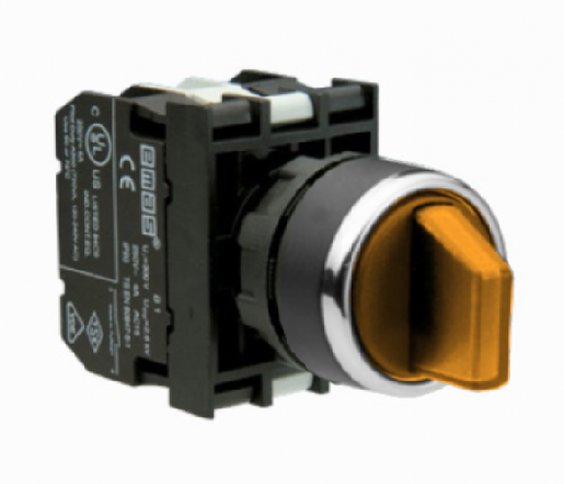 Переключатель EMAS 2-0-1 с подсветкой неон, с фиксацией, желтый, 2НО B131SL30S