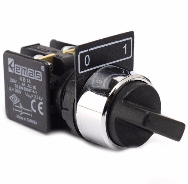 Переключатель EMAS 0-1 с фиксацией, угол поворота 60° (1НО+1НЗ) KB14S2 служит для отключения и включения электрических цепей низкого напряжения поочередно. Например, проходной переключатель предназначен для удобства управления освещением в различных комнатах, лестницах, коридорах. Такой переключатель монтируют между этажами, возле дверей помещений с несколькими входами.
