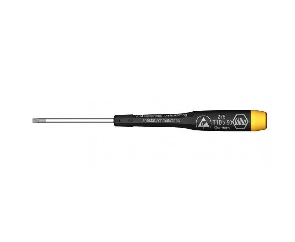 Прецизионная отвертка-звездочка Wiha Precision ESD TORX 278 T8x40 07662 - антистатическая отвертка для винтов TORX из высококачественной легированной стали с диссипативной рукояткой и крутящимся колпачком. Предназначена для точных работ с деталями, где требуется отвод электростатического разряда.