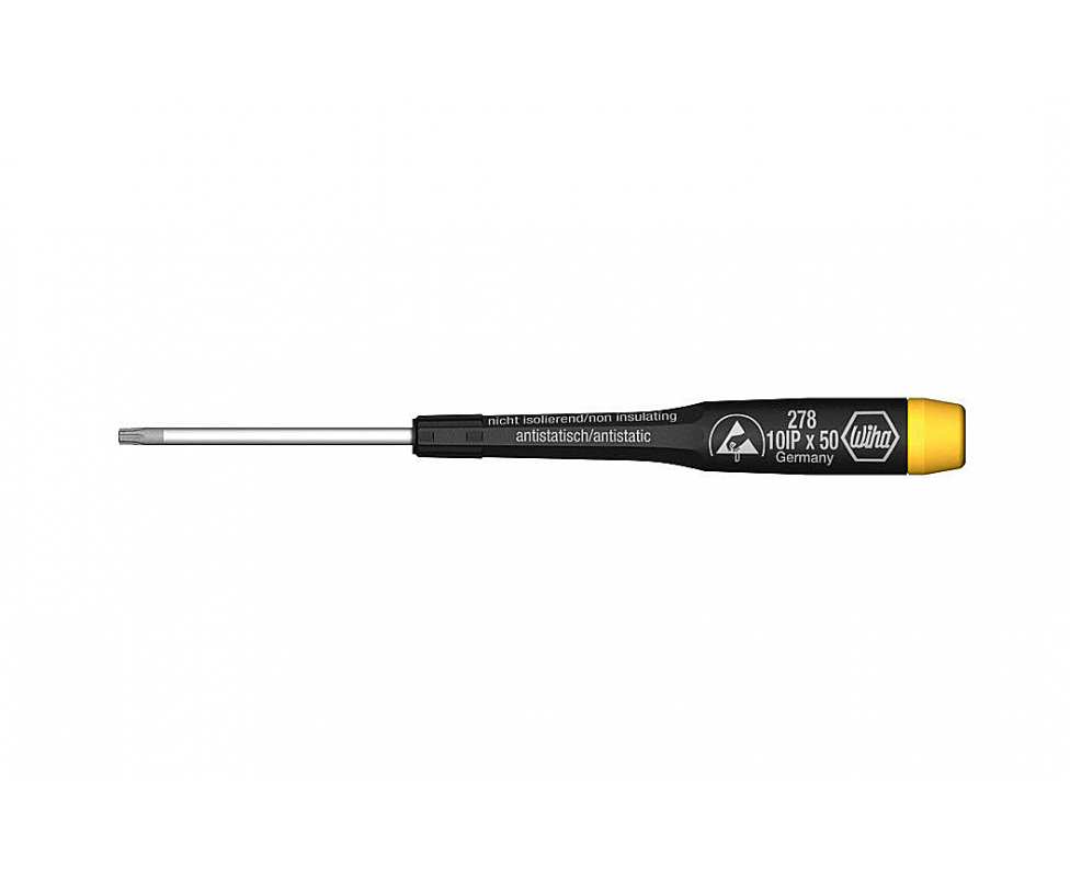 Прецизионная отвертка-звездочка Wiha Precision ESD TORX PLUS 278IP 6IPx40 27762 - антистатическая отвертка для винтов TORX PLUS из высококачественной легированной стали с диссипативной рукояткой и крутящимся колпачком. Предназначена для точных работ с деталями, где требуется отвод электростатического разряда.