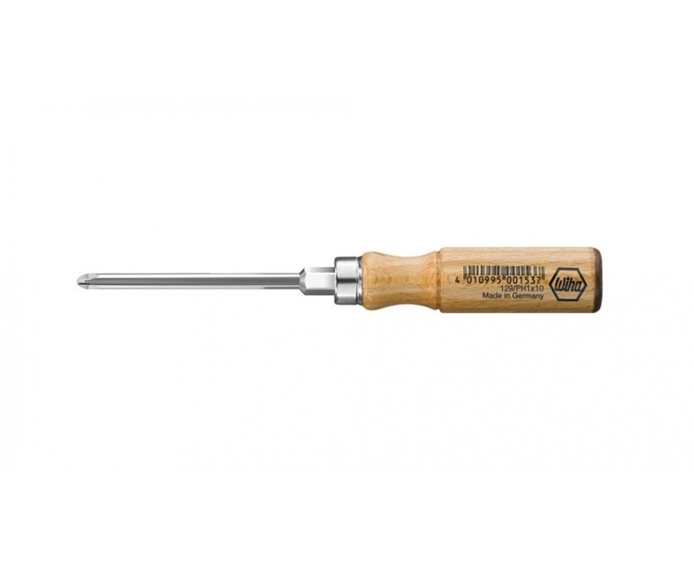 Столярная крестовая отвертка Wiha 129 PH 2x100 00058 с профилем Phillips из хромванадиевой стали и рукояткой из бука отлично подходит для повседневных работ в различных средах. Торец ручки защищен высококачественной кожаной крышкой. Используется в повседневных работах в промышленности и мастерских.