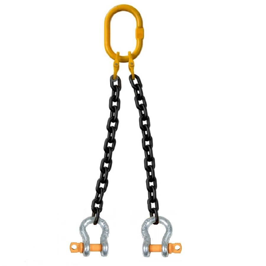 Строп цепной TOR 2СЦ г/п 11,2 т 3,0 м скобы G209 12 т состоит из двух ветвей, соединенных овальным звеном, с такелажными скобами на концах.