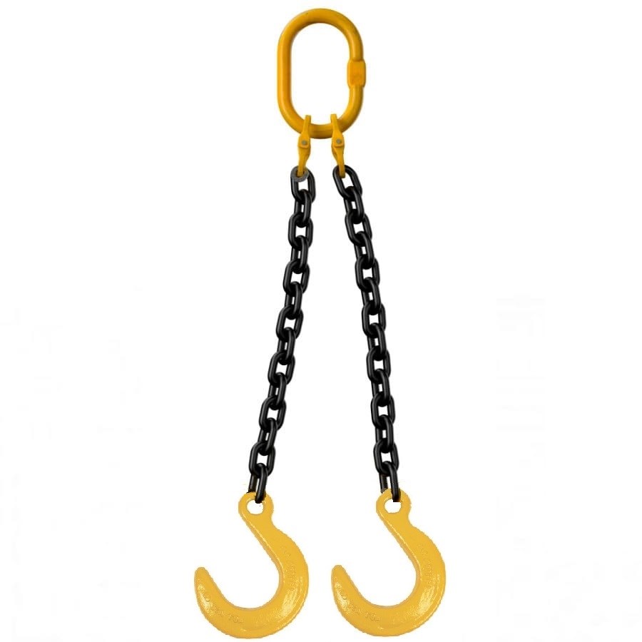 Строп цепной TOR 2СЦ г/п 5,3 т 1,6 м крюки с широким зевом 5,3 т состоит из двух ветвей, соединенных овальным звеном, с грузозахватными крюками на концах.