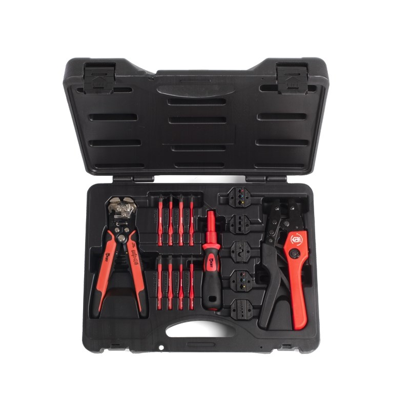 Универсальный набор для резки, снятия изоляции, опрессовки и монтажа проводов КВТ "UNI" с диэлектрическими битами применяется для резки и снятия изоляции с проводов до 10 мм, опрессовки изолированных, втулочных, неизолированных медных наконечников.