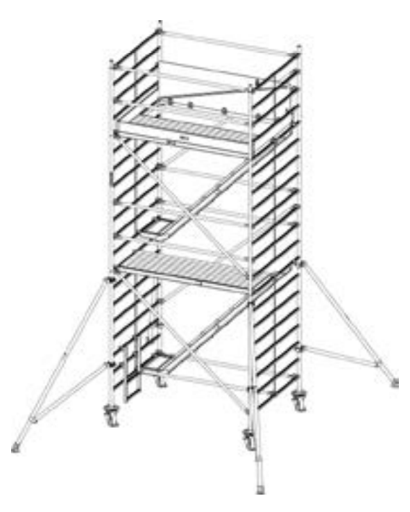 - Безопасность: Вышка-тура оборудована специальными боковыми ограждениями и сцеплениями, что обеспечивает безопасность работ на высоте.